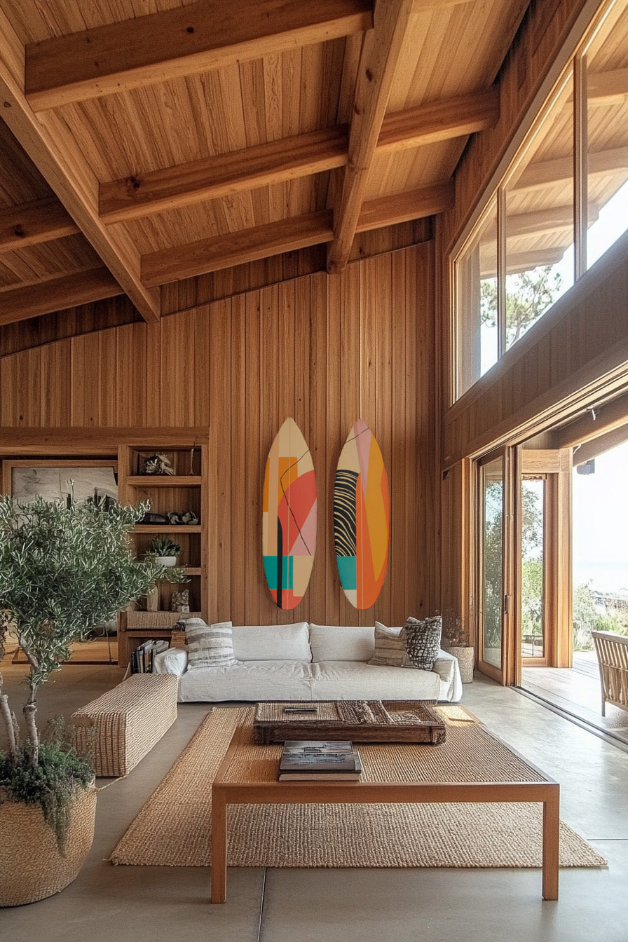One-of-a-kind surfboard collection by Erin Miller Wray and Thread Surfboards. This limited edition collection features 3 hand-painted surfboards designed intentionally to double as art for your home or wall as well as 100% shreddable surfboards. Featuring a custom color palette and original design, each board measures 6'. The boards are "Egg" shaped, created by hand from Thread Surfboards. The Egg is a fun and easy to ride board for surfers of all skill levels.